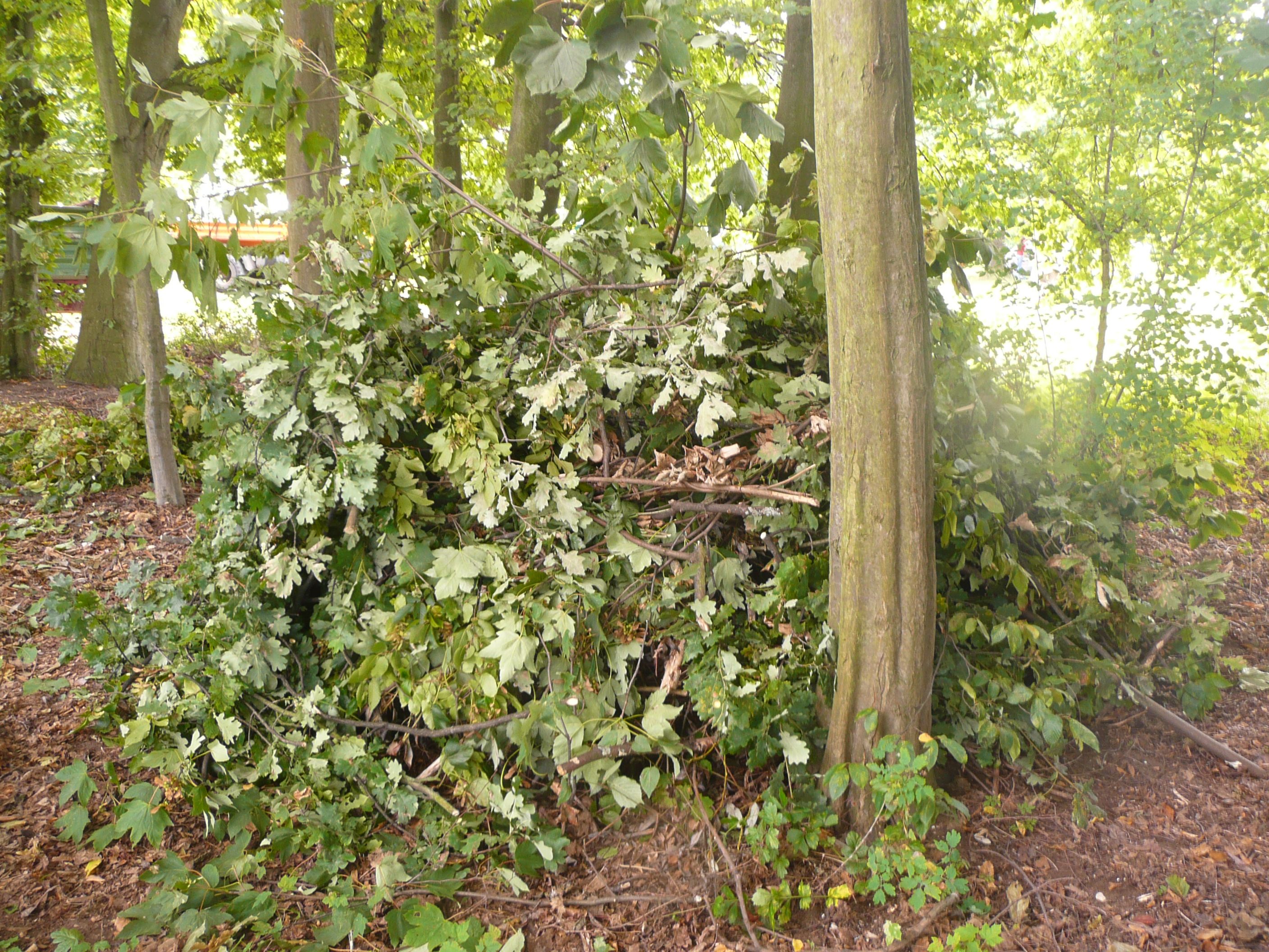 Von Birgit Böhm wurden wir informiert, dass zahlreiche Igel auf der Sportinsel leben und dort nicht mehr genug Unterschlupf finden. Edith Fießer fand bei Herrn Fuchs vom städtischen Gartenbauaumt gleich offene Ohren und die Zusage für bestimmte Standorte und der zur Verfügungstellung von Astmaterial für die Winterquartiere. Bei bestem „Bauwetter“ trafen sich Frau Ingrid Plesch-Gries, von der Igelhilfe Mittelfranken, Birgit Böhm, Edith Fießer und einige engagierte Naturschützer, sowie 10 fleißige Kinder und gingen mit großem Elan ans Werk, mehrmals wurde auf Anhängern Astmaterial herbeigeschafft, im Nu waren die Igelburgen fachgerecht errichtet. Die Kinder und die Erwachsenen sind zuversichtlich, dass Spaziergänger die riesigen „Laubhaufen“ respektieren und keinesfalls zerstören.
