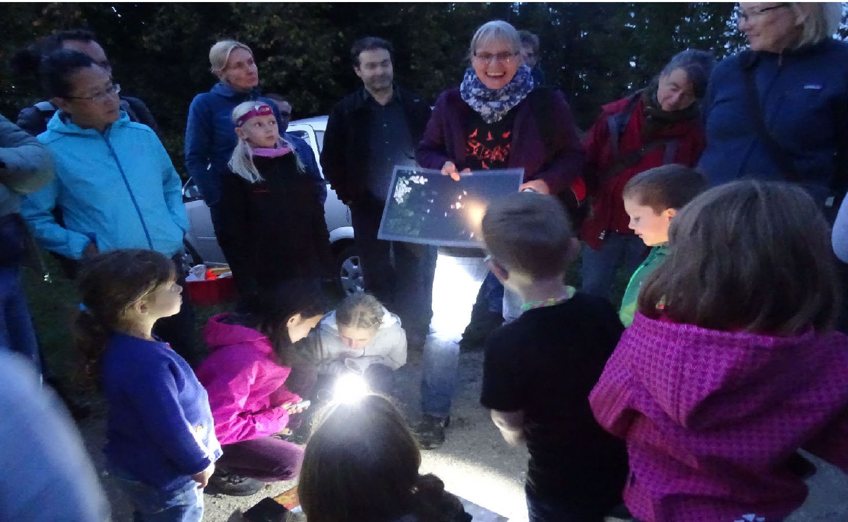 Die BUND Naturschutz Ortsgruppe Neunkirchen am Brand und Umgebung vertreten durch Diplom Biologin Sandra Kramps konnte im Rahmen von BayernTourNatur und zum Ferienprogramm Dormitz 55 interessierte Erwachsene und aufmerksam zuhörende Kinder zur Fledermaus Exkursion im Ebersbachtal begrüßen und Diplom Biologin Ute Gellenthien führte WEITER